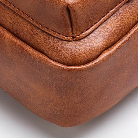 Diese Umhängetasche Männer besteht aus strapazierfähigem PU-Leder, das die Optik und Haptik von echtem Leder bietet, dabei aber pflegeleichter und wetterbeständiger ist. Die cognacbraune Farbe mit ihrer charakteristischen Textur verleiht der Ledertasche Herren eine warme, einladende Ausstrahlung.