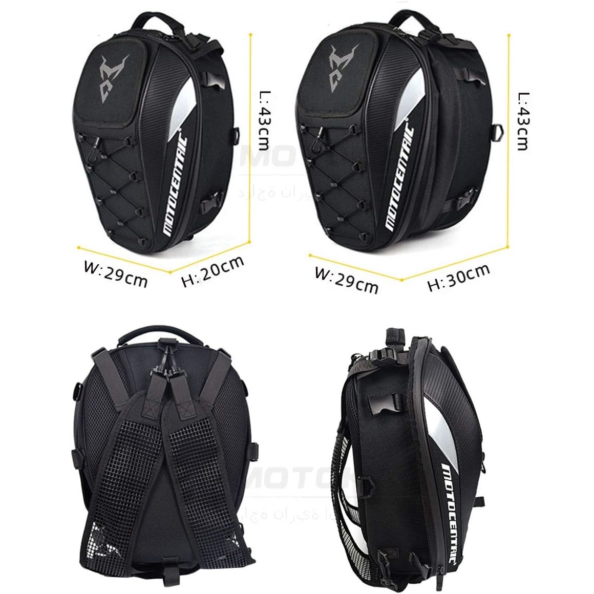 • Erweiterbarer unterer Abschnitt: Als ob das nicht schon genug wäre, verfügt dieser Motorrad Rucksack über einen erweiterbaren unteren Bereich, um den Stauraum bei Bedarf nochmals signifikant zu vergrößern.