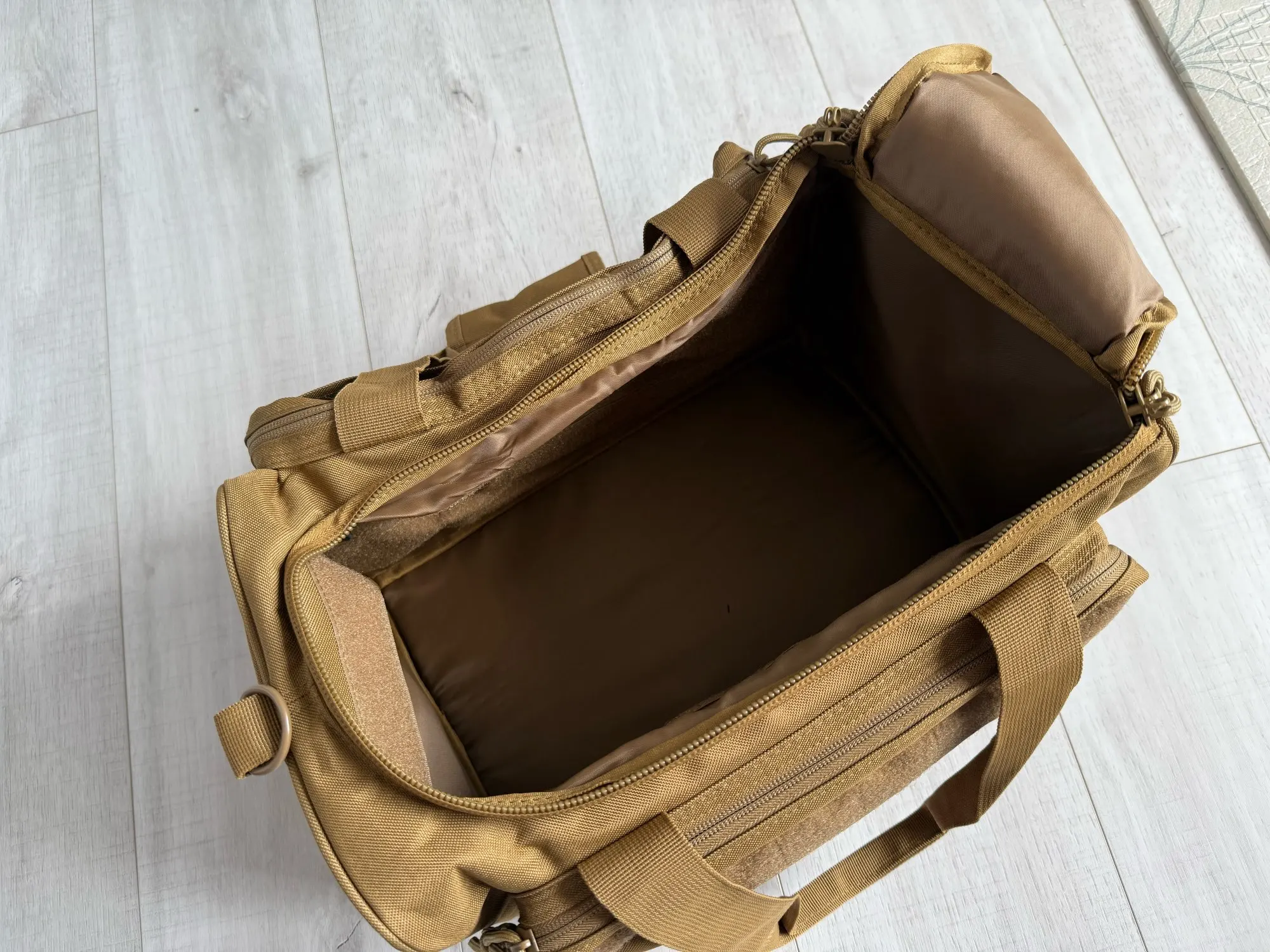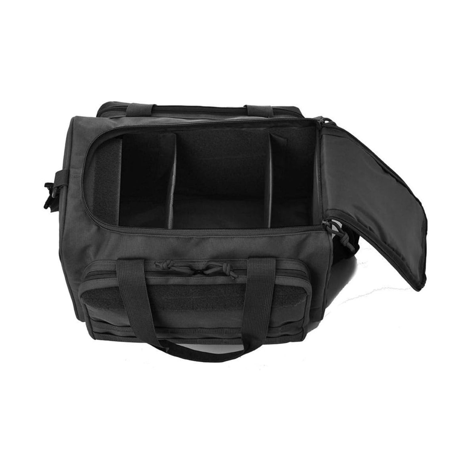 Der Hauptbereich (33x20x23 cm) bietet Platz für mehrere Kurzwaffen, Magazine oder Zubehör. Die 2 abnehmbaren Innenwände lassen sich flexibel anordnen – ideal, um die Tasche als taktische Distanz-Schießtasche oder sogar als Fototasche zu nutzen. Separate Fächer für Ohrenschützer, Brillen und Kleinteile halten alles an seinem Platz.